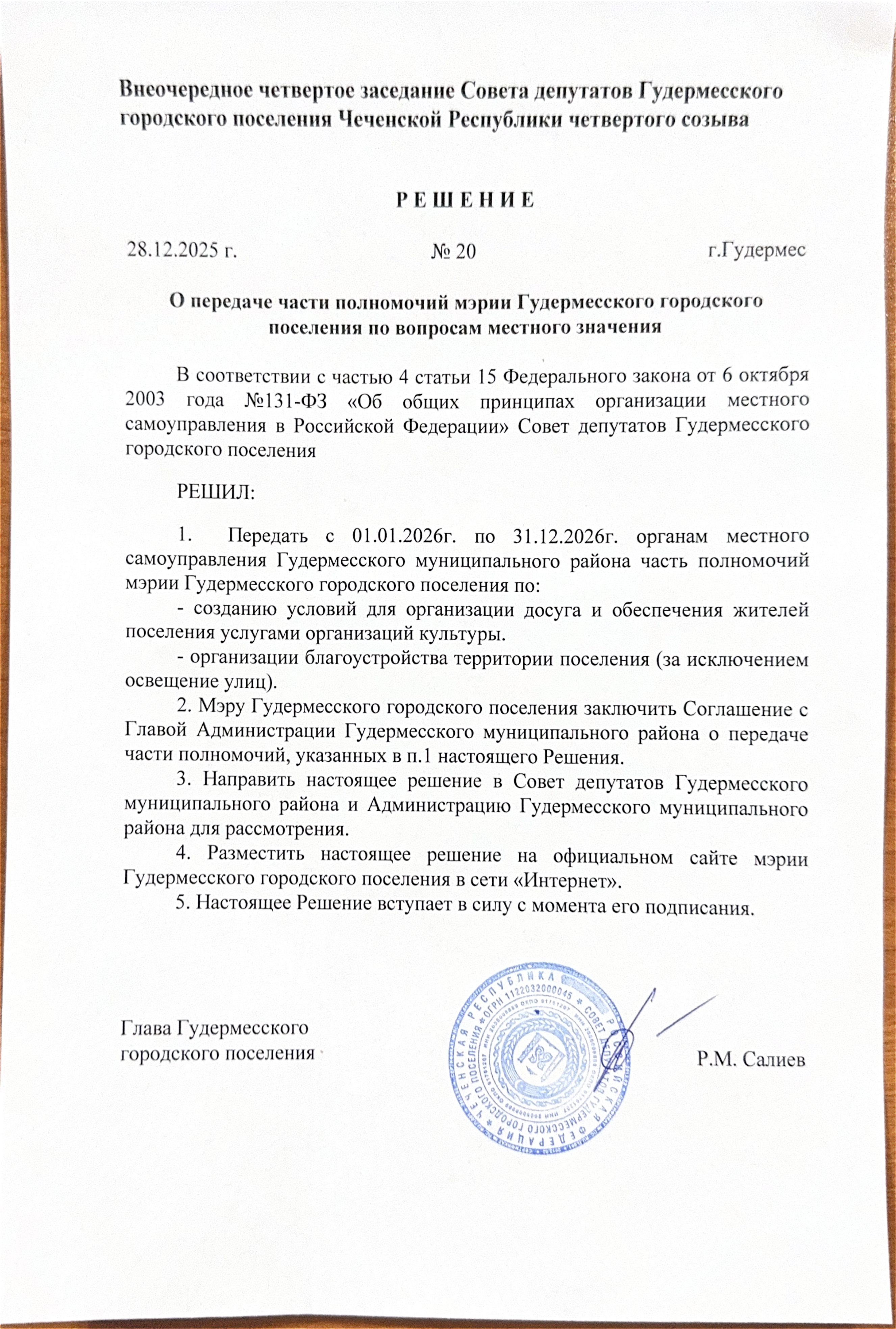 Решение № 20 от 28.12.2025г.